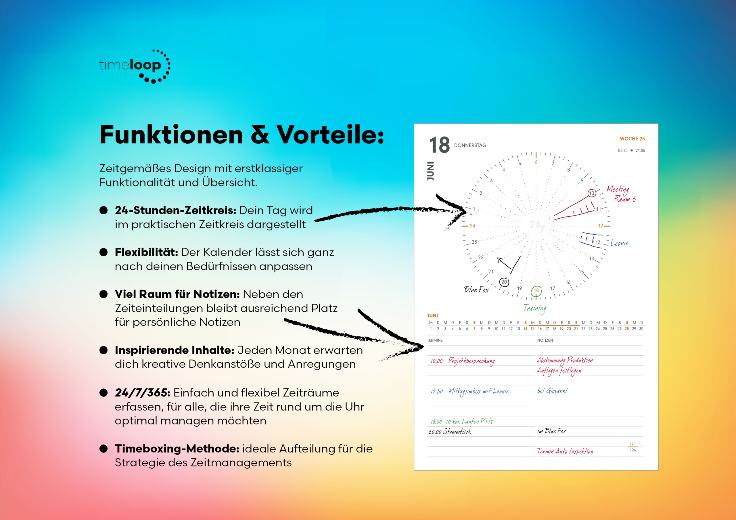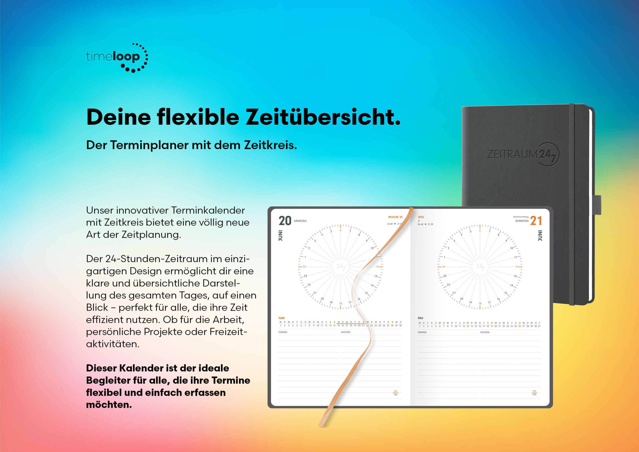 Unser innovativer Terminkalender mit Zeitkreis bietet eine völlig neue Art der Zeitplanung.